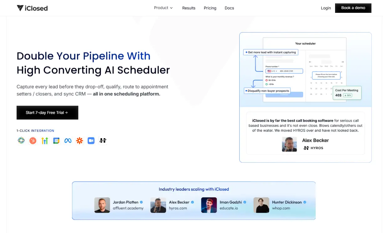 If your business relies on consultation calls, especially in the high-end sales sector, switching to iClosed is a smart decision to stop wasting budget and money. Easy integration, optimized workflow, and a clear increase in revenue are reasons to give it a try.