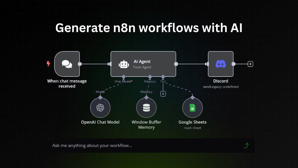 Instead of spending hours meticulously navigating each step, now you can simply enter commands, and the AI will suggest quick solutions, saving significant time and effort. This is also a major advantage of n8n in optimizing automated workflows, especially when integrating AI agents to handle large or complex data.